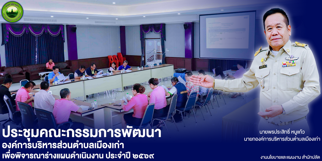 ✍🏻วันอังคารที่ ๑๔ ตุลาคม ๒๕๖๘ เวลา ๑๐.๐๐ น. งานนโยบายและแผนงาน สำนักปลัด องค์การบริหารส่วนตำบลเมืองเก่า ดำเนินการจัดประชุมประชุมคณะกรรมการพัฒนาองค์การบริหารส่วนตำบลเมืองเก่า เพื่อพิจารณาร่างแผนดำเนินงาน ประจำปี ๒๕๖๙ โดยมี นายพรประสิทธิ์ หนูแก้ว นายกองค์การบริหารส่วนตำบลเมืองเก่า เป็นประธานในการประชุม พร้อมด้วย คณะผู้บริหาร ประธานสภา สมาชิกสภาตำบลเมืองเก่า นายสนธยา อาษารอด ผู้อำนวยการโรงเรียนบรรหารวิทยา นางพรรณี วิริยรัตน์คุรุ ผู้อำนวยการโรงพยาบาลส่งเสริมสุขภาพตำบลเมืองเก่า กำนัน ผู้ใหญ่บ้าน ปลัด หัวหน้าส่วนราชการ และคณะกรรมการพัฒนาท้องถิ่น ร่วมประชุม ณ ห้องประชุมใหญ่ชั้น ๒ องค์การบริหารส่วนตำบลเมืองเก่า