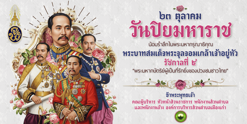 ✍🏻วันพฤหัสบดีที่ ๒๓ ตุลาคม ๒๕๖๘ เวลา ๐๗.๐๐ น. องค์การบริหารส่วนตำบลเมืองเก่า ภายใต้การอำนวยการของ นายพรประสิทธิ์ หนูแก้ว นายกองค์การบริหารส่วนตำบลเมืองเก่า ได้มอบหมายให้ นายสมชาย พาเทศ รองนายกองค์การบริหารส่วนตำบลเมืองเก่า พร้อมด้วย คณะผู้บริหาร ประธานสภา สมาชิกสภาตำบลเมืองเก่า หัวหน้าส่วนราชการ พนักงานส่วนตำบล และพนักงานจ้างองค์การบริหารส่วนตำบลเมืองเก่า ร่วมพิธีวางพวงมาลาถวายพระราชสักการะพระบรมราชานุสาวรีย์ พระบาทสมเด็จพระจุลจอมเกล้าเจ้าอยู่หัว พระปิยมหาราช โดยมี นายธรรมรัฏฐ์ งามแสง นายอำเภอกบินทร์บุรี เป็นประธานในพิธี ณ บริเวณลานพระบรมราชานุสาวรีย์ รัชกาลที่ ๕ ณ ที่ว่าการอำเภอกบินทร์บุรี อำเภอกบินทร์บุรี จังหวัดปราจีนบุรี