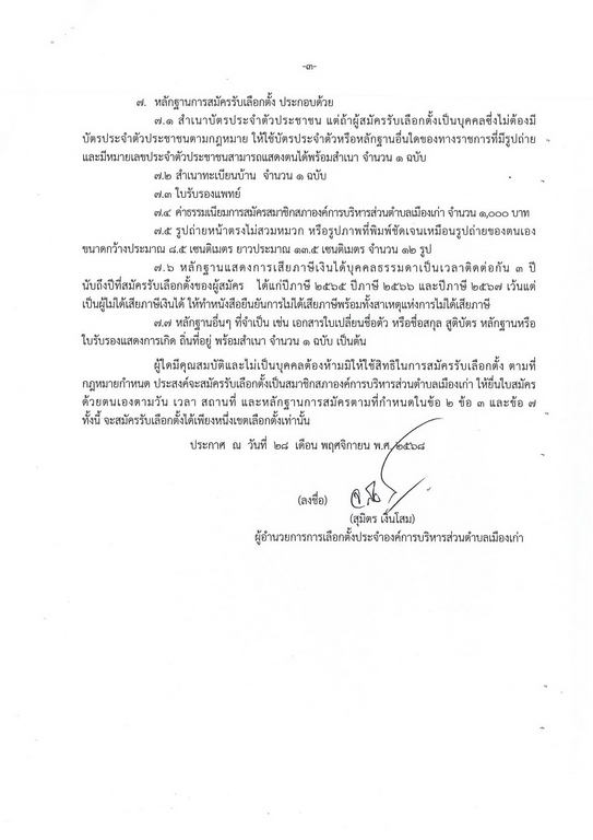 ⏰ระยะเวลาการสมัครรับเลือกตั้ง ตั้งแต่วันจันทร์ที่ ๑ เดือน ธันวาคม พ.ศ. ๒๕๖๘ ถึงวันศุกร์ที่ ๕ เดือน ธันวาคม พ.ศ. ๒๕๖๘ เวลา ๐๘.๓๐ นาฬิกา ถึงเวลา ๑๖.๓๐ นาฬิกา