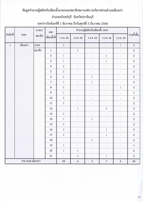 🔥รวมจำนวนผู้สมัครสมาชิกสภาองค์การบริหารส่วนตำบลเมืองเก่าทั้งสิ้น ๔๖ คน✅