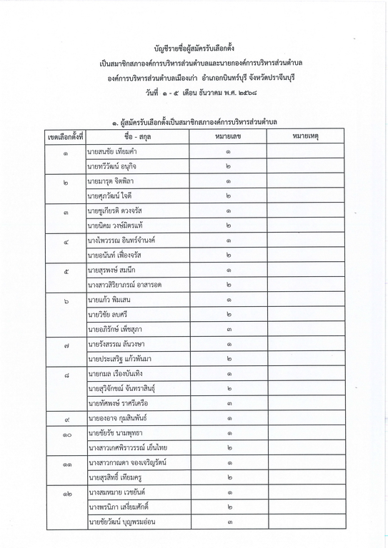 🌈ผู้สมัครนายกพร้อมหมายเลข
