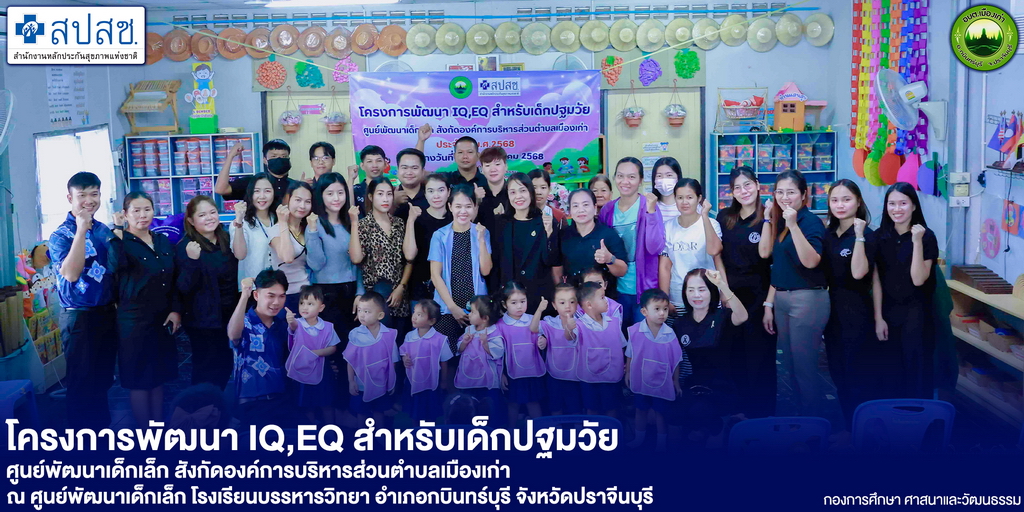 ✍🏻วันจันทร์ที่ ๑๕ ธันวาคม ๒๕๖๘ เวลา ๐๙.๐๐ น. กองการศึกษา ศาสนาและวัฒนธรรม ดำเนินการจัดโครงการพัฒนา IQ,EQ สำหรับเด็กปฐมวัย ศูนย์พัฒนาเด็กเล็ก สังกัดองค์การบริหารส่วนตำบลเมืองเก่า โดยมี จ่าสิบเอกสุมิตร เงินโสม ปลัดองค์การบริหารส่วนตำบลเมืองเก่า ปฏิบัติหน้าที่นายกองค์การบริหารส่วนตำบลเมืองเก่า เป็นประธานในพิธีเปิดโครงการ พร้อมด้วย หัวหน้าส่วนราชการ พนักงานส่วนตำบล พนักงานจ้างองค์การบริหารส่วนตำบลเมืองเก่า ผู้ปกครอง และครูผู้ดูแลเด็กในศูนย์พัฒนาเด็กเล็ก สังกัดองค์การบริหารส่วนตำบลเมืองเก่า ร่วมกิจกรรม โดยมี นางอริญญา ไมขุนทด ผู้อำนวยการกองการศึกษา ศาสนาและวัฒนธรรม กล่าวรายงานวัตถุประสงค์ในการจัดโครงการในครั้งนี้ ณ ศูนย์พัฒนาเด็กเล็ก โรงเรียนบรรหารวิทยา อำเภอกบินทร์บุรี จังหวัดปราจีนบุรี