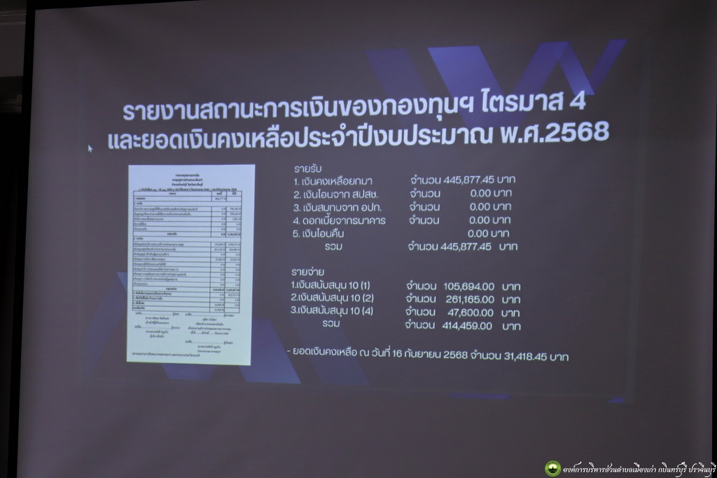 🔹รายงานสถานะการเงินของกองทุนฯ ไตรมาส ๔ และยอดเงินคงเหลือประจำปีงบประมาณ พ.ศ. ๒๕๖๘