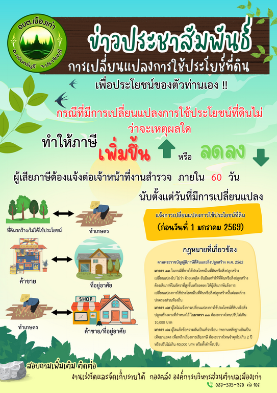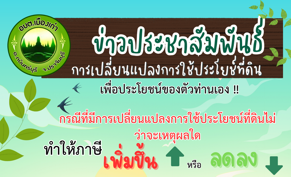 🌈กองคลัง องค์การบริหารส่วนตำบลเมืองเก่า ขอประชาสัมพันธ์การเปลี่ยนแปลงการใช้ประโยชน์ที่ดิน