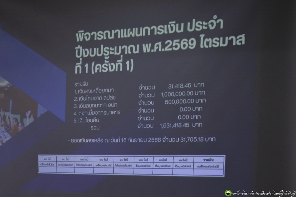 🔹เพื่อพิจารณาอนุมัติแผนการเงินประจำปีงบประมาณ พ.ศ. ๒๕๖๙ ไตรมาศที่ ๑ (ครั้งที่ ๑)