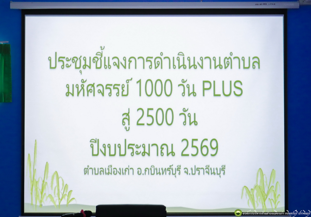 ✍🏻วันจันทร์ที่ ๙ มีนาคม ๒๕๖๙ เวลา ๐๙.๐๐ น. นายสมชาย พาเทศ นายกองค์การบริหารส่วนตำบลเมืองเก่า เป็นประธานเปิดการประชุมชี้แจงการดำเนินงาน ตำบลมหัศจรรย์ ๑๐๐๐ วัน PLUS สู่ ๒๕๐๐ วัน ปีงบประมาณ ๒๕๖๙ พร้อมด้วย คณะผู้บริหาร ปลัด หัวหน้าส่วนราชการ องค์การบริหารส่วนตำบลเมืองเก่า ดำเนินการโดยโรงพยาบาลส่งเสริมสุขภาพตำบลเมืองเก่า โดยมี นายชัยทัต ชัยสิทธิ์ นายกเทศมนตรีตำบลเมืองเก่า พร้อมด้วย ผู้อำนวยการโรงเรียนต่างๆ ในเขตพื้นที่ตำบลเมืองเก่า เข้าร่วมประชุม ณ ห้องประชุมโรงพยาบาลส่งเสริมสุขภาพตำบลเมืองเก่า อำเภอกบินทร์บุรี จังหวัดปราจีนบุรี โดยมี นางพรรณี วิริยรัตน์คุรุ ผู้อำนวยการโรงพยาบาลส่งเสริมสุขภาพตำบลเมืองเก่า กล่าวรายงานวัตถุประสงค์ในการดำเนินงานในครั้งนี้