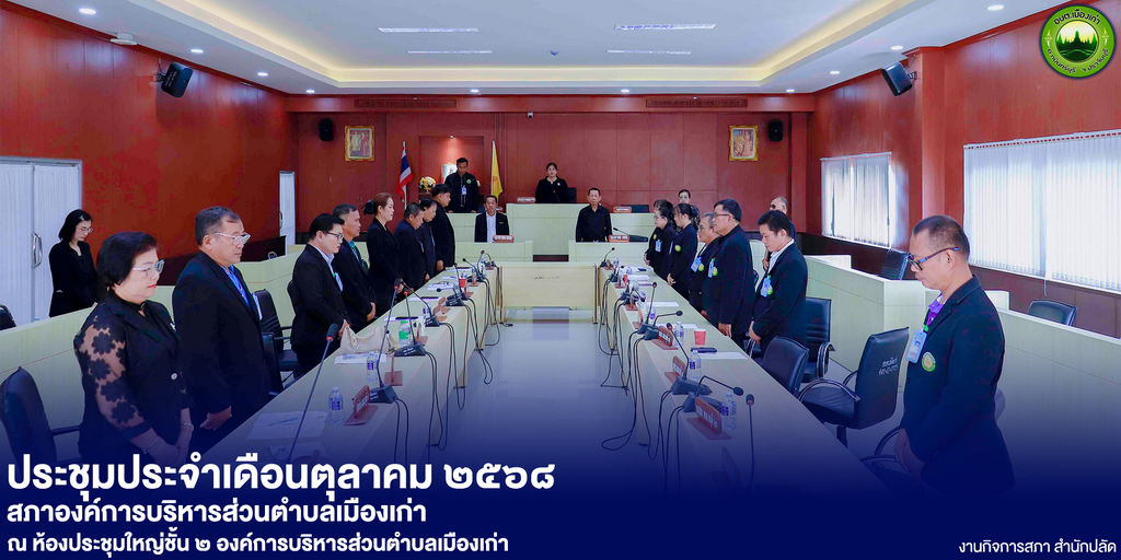✍🏻วันศุกร์ที่ ๓๑ ตุลาคม ๒๕๖๘ เวลา ๐๙.๓๐ น. งานกิจการสภา สำนักปลัด องค์การบริหารส่วนตำบลเมืองเก่า ดำเนินการประชุมประจำเดือนตุลาคม ๒๕๖๘ สภาองค์การบริหารส่วนตำบลเมืองเก่า นำโดย นางศิริลักษณ์ เฟื่องจรัส ประธานสภา พร้อมด้วย สมาชิกสภาตำบลเมืองเก่า และคณะผู้บริหาร องค์การบริหารส่วนตำบลเมืองเก่า นำโดย นายพรประสิทธิ์ หนูแก้ว นายกองค์การบริหารส่วนตำบลเมืองเก่า ได้มอบหมายให้ นายสมชาย พาเทศ รองนายกองค์การบริหารส่วนตำบลเมืองเก่า เข้าร่วมประชุมพร้อมด้วย นายไพทูรย์ แสงหอม รองนายกองค์การบริหารส่วนตำบลเมืองเก่า นางศิริกุล เปี่ยมประเสริฐ เลขานุการนายกองค์การบริหารส่วนตำบลเมืองเก่า หัวหน้าส่วนราชการ และพนักงานเจ้าหน้าที่องค์การบริหารส่วนตำบลเมืองเก่า ร่วมประชุม ณ ห้องประชุมสภาชั้น ๒ องค์การบริหารส่วนตำบลเมืองเก่า
