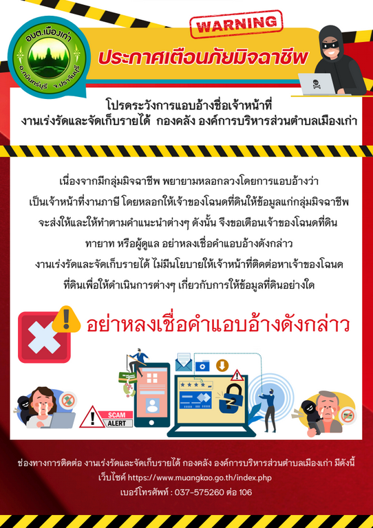 #องค์การบริหารส่วนตำบลเมืองเก่า #เตือนภัยมิจฉาชีพ