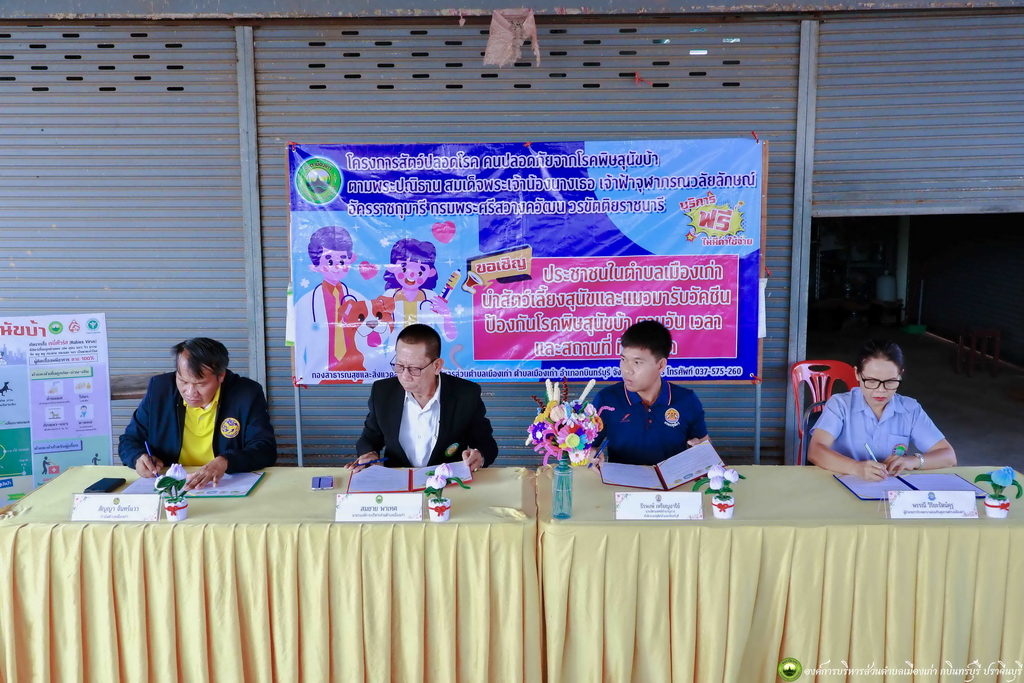 🔹ทั้งสี่ฝ่ายประสานความร่วมมือ เพื่อเร่งรัดการกำจัดโรคพิษสุนัขบ้า ในเขตพื้นที่รับผิดชอบขององค์การบริหารส่วนตำบลเมืองเก่า อำเภอกบินทร์บุรี จังหวัดปราจีนบุรี ให้เป็นพื้นที่ปลอดภัยจากโรคพิษสุนัขบ้า