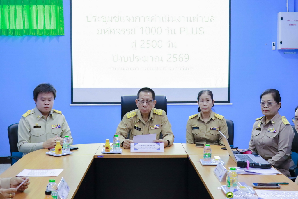 ✍🏻วันจันทร์ที่ ๙ มีนาคม ๒๕๖๙ เวลา ๐๙.๐๐ น. นายสมชาย พาเทศ นายกองค์การบริหารส่วนตำบลเมืองเก่า เป็นประธานเปิดการประชุมชี้แจงการดำเนินงาน ตำบลมหัศจรรย์ ๑๐๐๐ วัน PLUS สู่ ๒๕๐๐ วัน ปีงบประมาณ ๒๕๖๙ พร้อมด้วย คณะผู้บริหาร ปลัด หัวหน้าส่วนราชการ องค์การบริหารส่วนตำบลเมืองเก่า ดำเนินการโดยโรงพยาบาลส่งเสริมสุขภาพตำบลเมืองเก่า โดยมี นายชัยทัต ชัยสิทธิ์ นายกเทศมนตรีตำบลเมืองเก่า พร้อมด้วย ผู้อำนวยการโรงเรียนต่างๆ ในเขตพื้นที่ตำบลเมืองเก่า เข้าร่วมประชุม ณ ห้องประชุมโรงพยาบาลส่งเสริมสุขภาพตำบลเมืองเก่า อำเภอกบินทร์บุรี จังหวัดปราจีนบุรี โดยมี นางพรรณี วิริยรัตน์คุรุ ผู้อำนวยการโรงพยาบาลส่งเสริมสุขภาพตำบลเมืองเก่า กล่าวรายงานวัตถุประสงค์ในการดำเนินงานในครั้งนี้