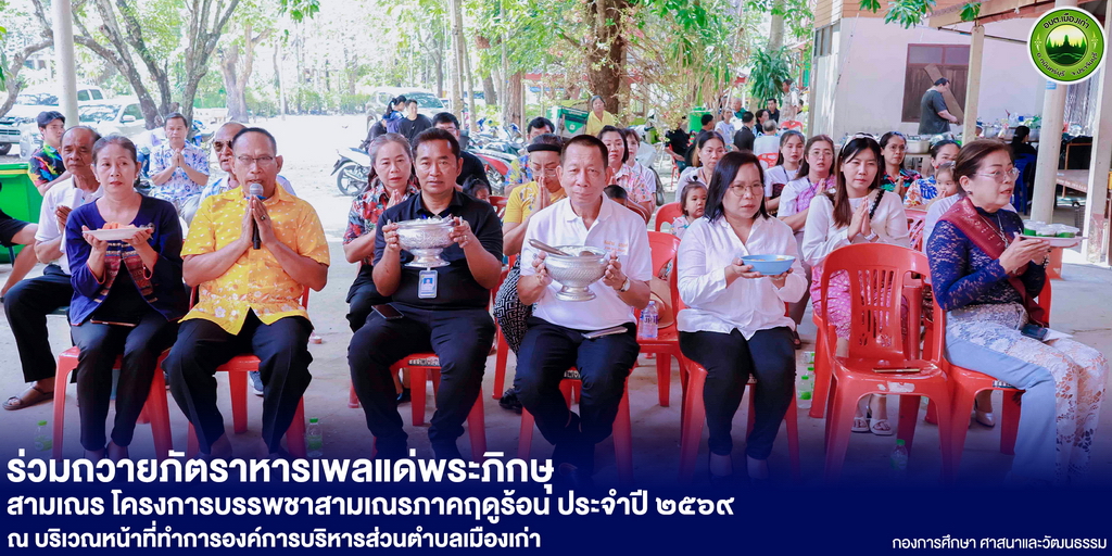✍🏻วันพฤหัสบดีที่ ๙ เมษายน ๒๕๖๘ เวลา ๑๐.๐๐ น. นายสมชาย พาเทศ นายกองค์การบริหารส่วนตำบลเมืองเก่า พร้อมด้วย คณะผู้บริหาร หัวหน้าส่วนราชการ พนักงานส่วนตำบล และพนักงานจ้าง องค์การบริหารส่วนตำบลเมืองเก่า ร่วมกันถวายภัตราหารเพล แด่พระภิกษุ สามเณร ในส่วนของโครงการบรรพชาสามเณรภาคฤดูร้อนเพื่อน้อมถวายเป็นพระราชกุศลฯ ประจำปี ๒๕๖๙ ณ วัดสว่างอารมณ์ ตำบลเมืองเก่า อำเภอกบินทร์บุรี จังหวัดปราจีนบุรี🙏🏻🤍