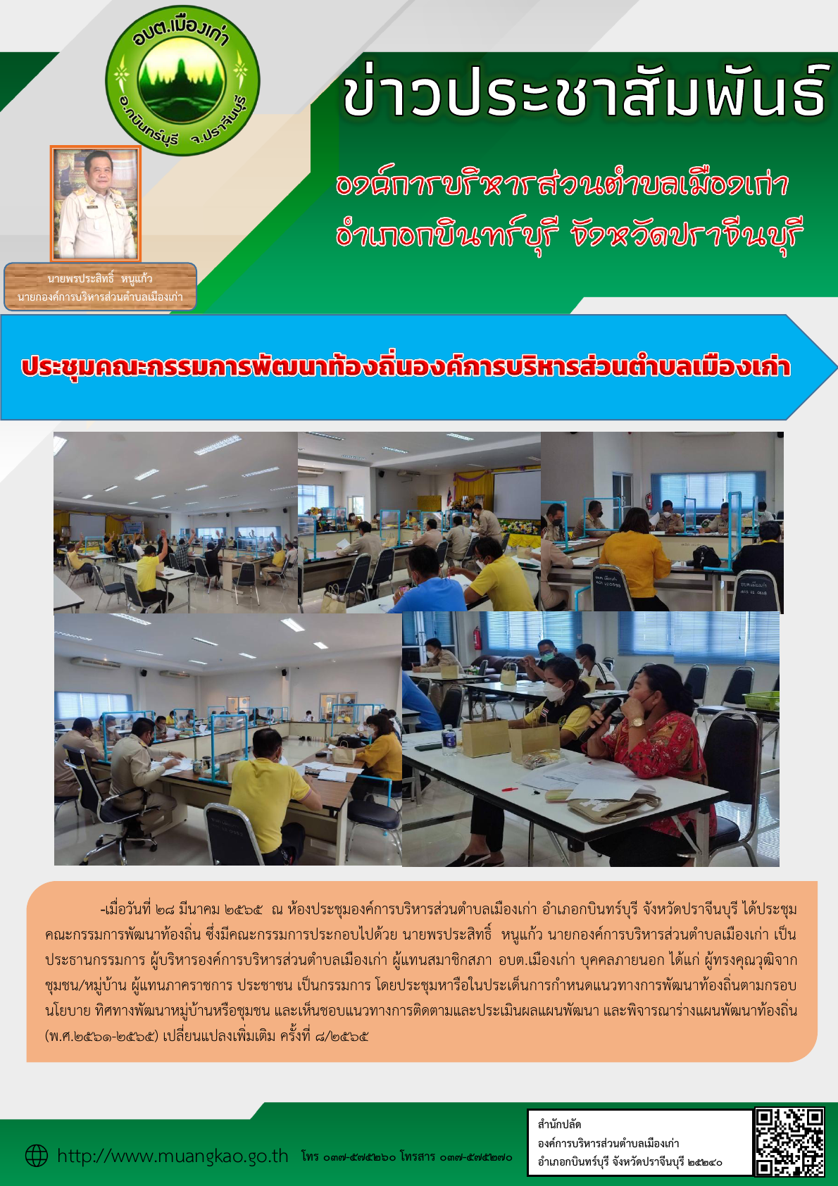 ประกาศองค์การบริหารส่วนตำบลเมืองเก่า เรื่อง กำหนดพื้นที่ควบคุมเหตุรำคาญ พ.ศ. ๒๕๖๘ |